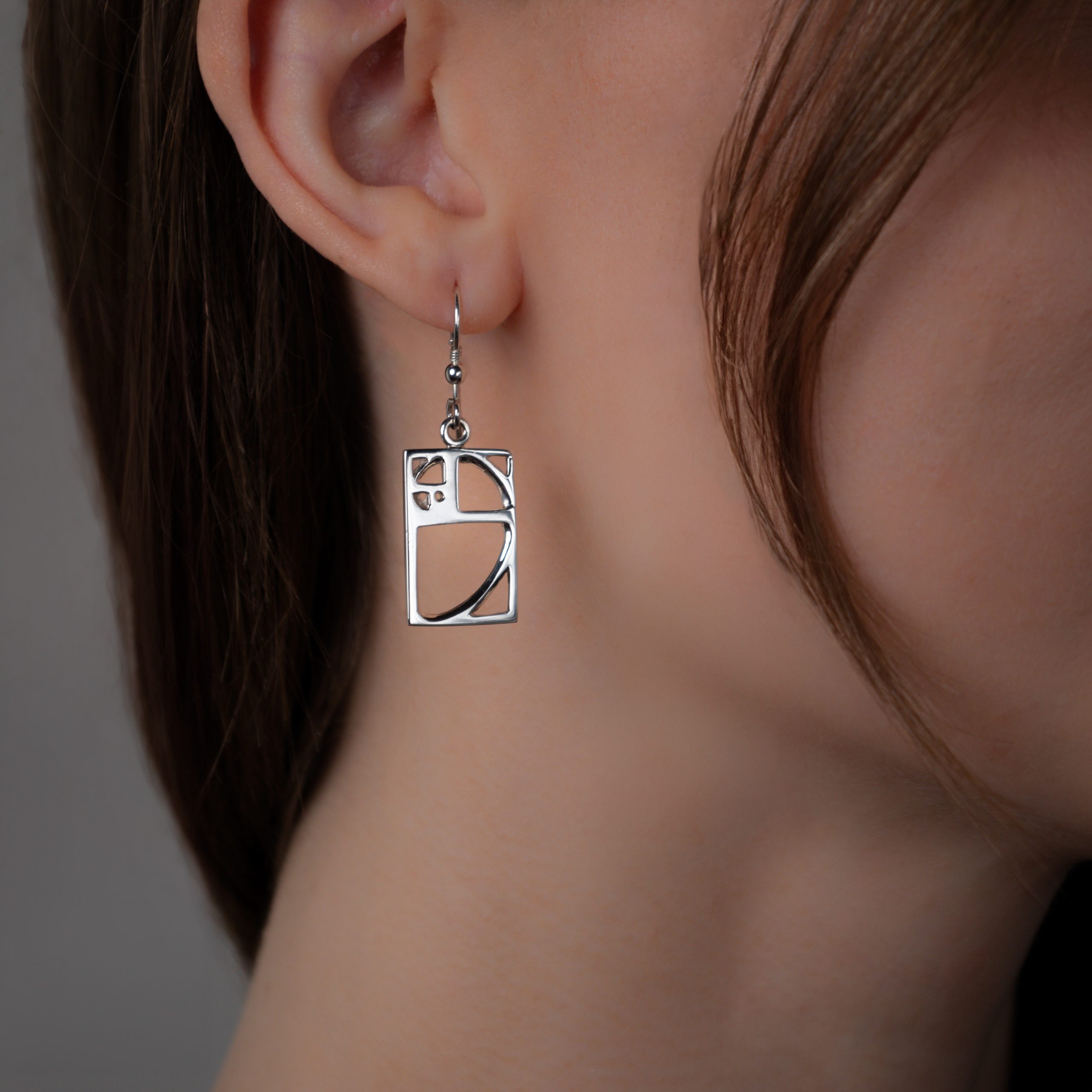 These drop sterling silver Lucas Spiral earrings are handmade in Ireland, they represents the mathematical harmony and precision we find in nature, a mathematical sequence found in sea shells, sunflowers, pine cones and deep in the galaxies